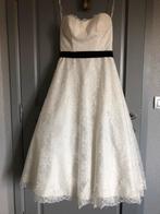 Italian style trouwjurk in kant met zwart satijnen lint (kan ook zonder). Op de rug mooi afgewerkt met een rij knoopjes (eronder zit een verborgen rits). Met onderrokken voor een mooi volume. Komt tot