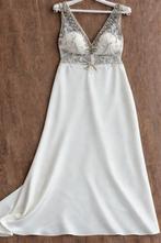 Prachtige trouwjurk in perfecte staat. Ivoorkleurig, stijlvol en net een tikkeltje anders. Fijne, handgenaaide en gedetailleerde afwerking. Elk steentje is 100% intact. Heerlijk draagcomfort en handig