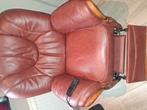 Bruin leder met houten afwerking vooraan.werkt prima.de staat is goed en mooi.