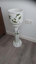 Mooie bloempot met zuil, van aardewerk. Totale hoogte 82cm hoogte zuil 60 cm doorsnee bloempot 25cm. Handgeschilderd!