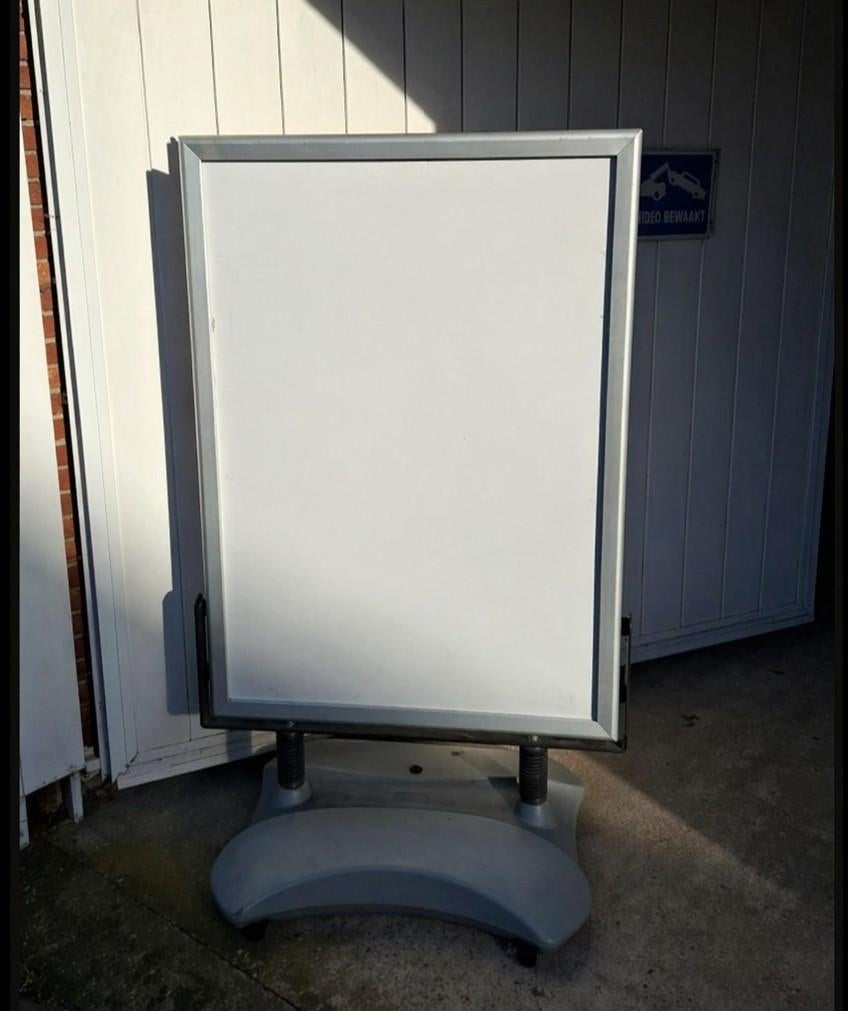 Groot reclamebord of stoepbord a0 met voet die je kan vullen en zware veren zodat de wind er geen vat op heeft