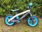 Lichte loopfiets. Hoogte van zadel verstelbaar (32 tot 39 cm) zonder gereedschap. Rubberen bandjes hoef je niet op te pompen. Ook