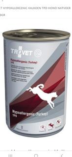 8 blikken kalkoen hypoallergeen hondenvoeding van trovet, houdbaarheidsdatum 10/2027. Plus gratis 3 blikken lam hypoallergeen trovet, houdbaarheidsdatum 12/2025.
