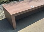 Zeer stevig hout, werd op maat gemaakt door schrijnwerker tv-meubel voorzien van 2 gaten om kabels door te steken afmetingen tv-meubel: 240l x 60b x 41h afmetingen tafel: 89b x 89l x 71h nieuwprijs wa
