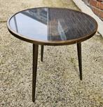 Superbe petite table en bronze hauteur 42 cm et diamètre 40 cm. La vitre se retire pour y mettre une décoration ou pas.