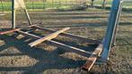 Oude gietijzeren poort paal 2,90m boven de grond voor een poort van +_2,20m hoog metalen poort