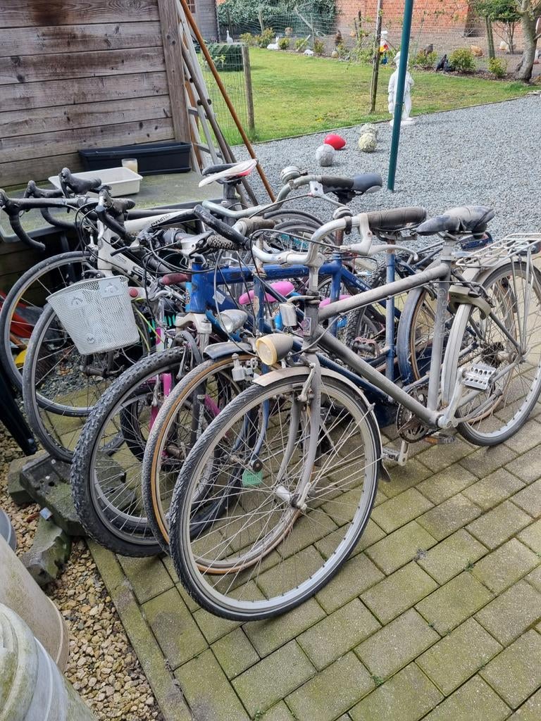 Mooi lot van 7fietsen en 2 electrische kindersteps voor opmaak of onderdelen zitten merken tussen zoals norta en thompson