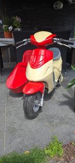 Mooie kinderscooter met zijspan. Kunnen dus twee kinderen op rijden of eventueel met grote knuffelbeer. Zijspan kan er ook af . Werkt op 24volt, twee goede droge baterijen van 12v met lader inclusief