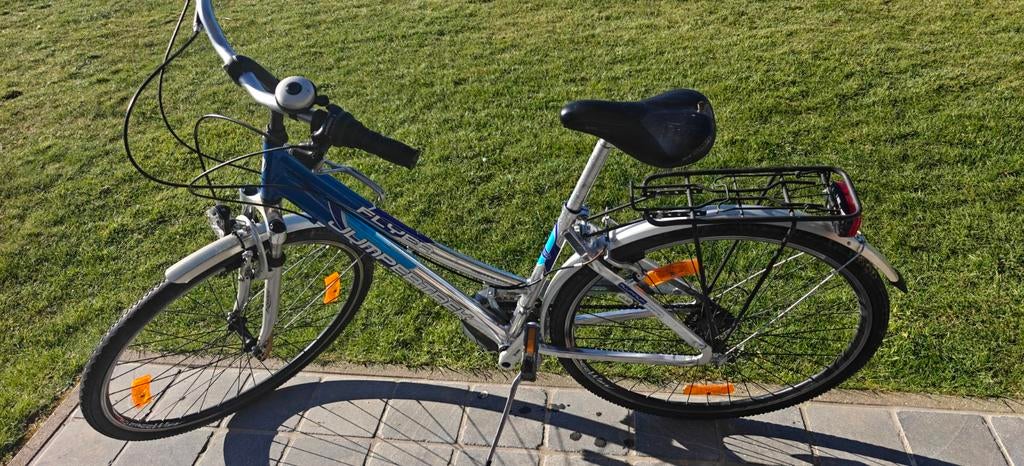 Damesfiets in alu frame... Ideaal voor op kot of kleine verplaatsingen. Fiets staat volledig in orde en heeft 3 x 6 versnellingen. 2E hands gekocht een paar maanden geleden maar wegens aankoop bromfie