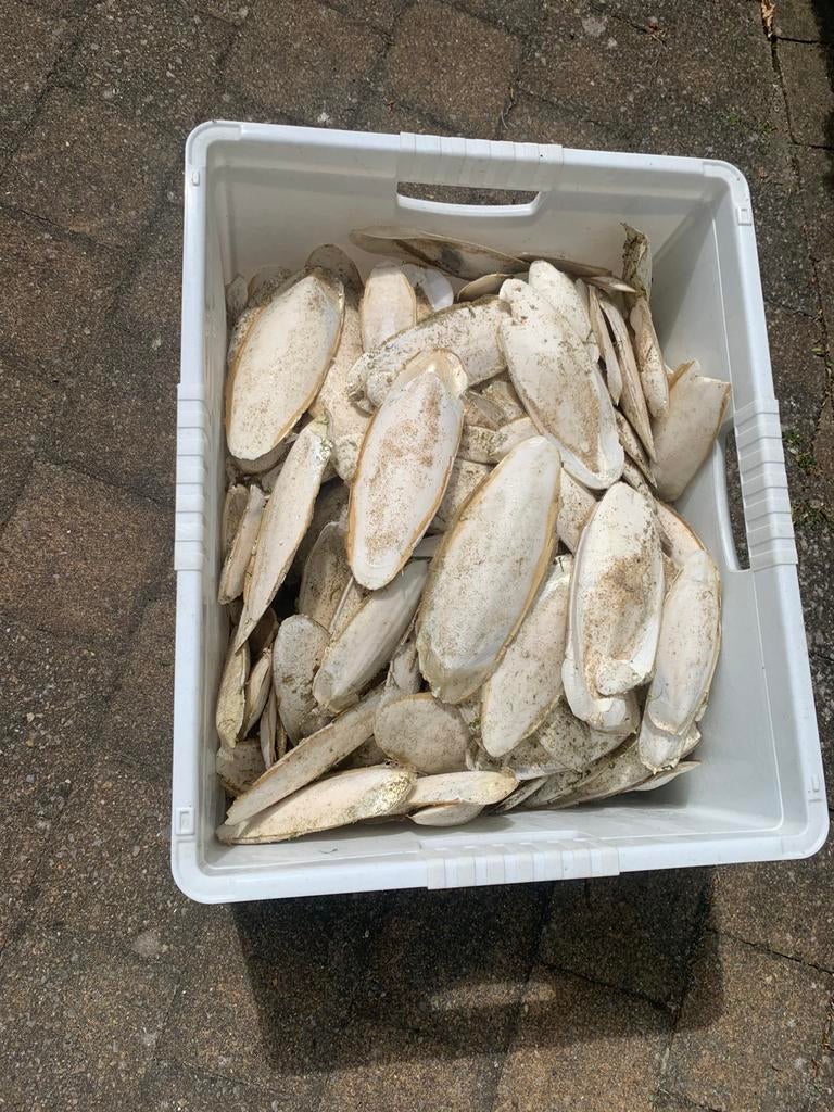 Sepia kalksteen voor vogels/kippen. Groot 1st: 0,50 euro, 12st: 5 euro. Klein 1st: 0,20 euro, 12st: 2 euro. Indien te verzenden komen deze kosten er bij.