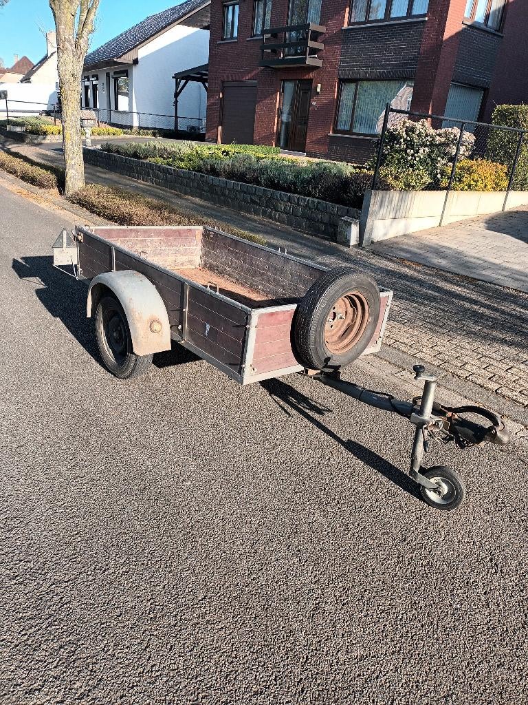 Mooie aanhanger in deftige staat . Afmetingen 200 cm x 105 cm x 45 cm . Banden zijn nog goed , verlichting werkt , voorzien van plaatklemmen en neuswiel . Mag weg voor een deftig bod.
