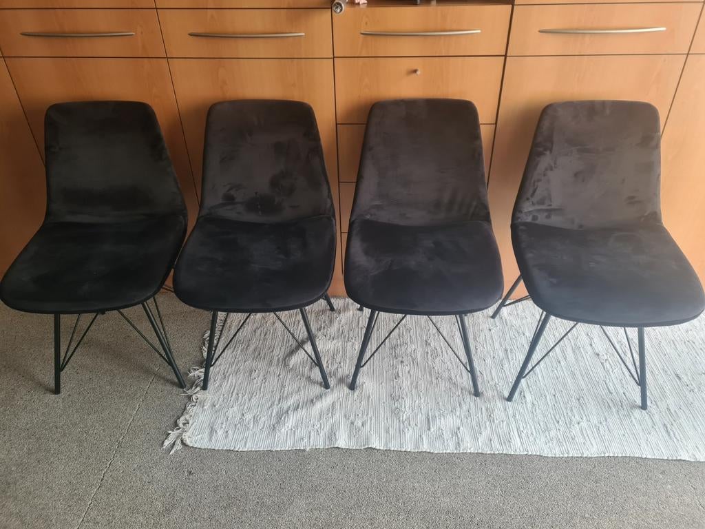 4x zwarte velouren eetkamerstoelen