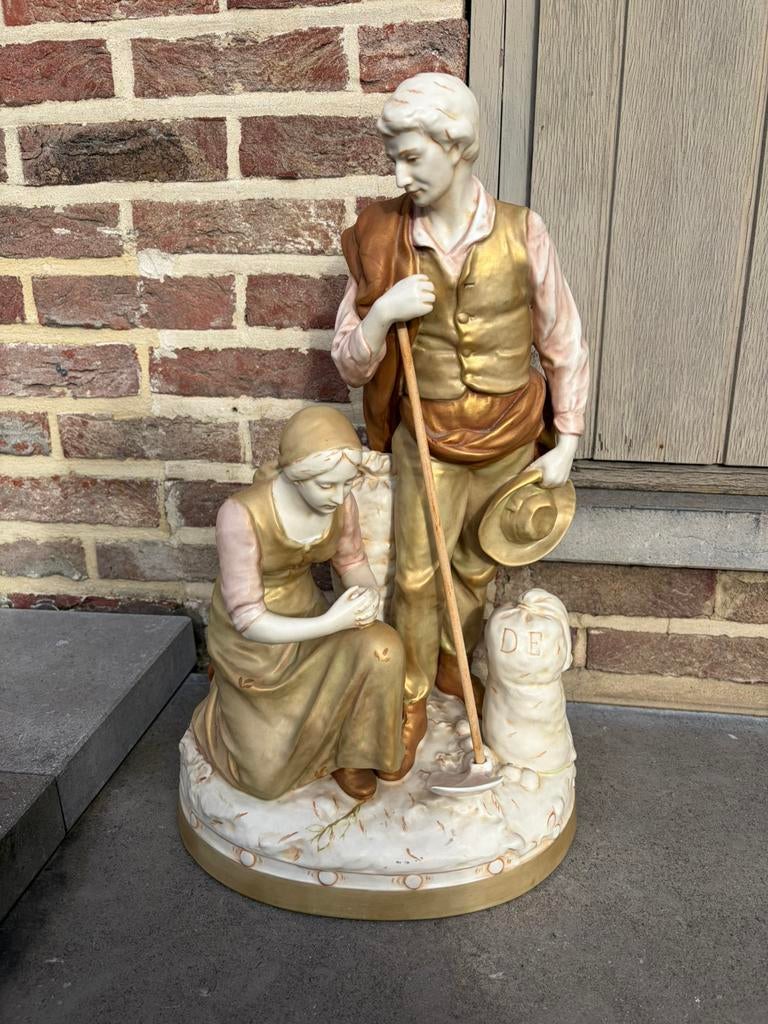Royal dux groep genummerd en gesigneerd met roze driehoek fijn haarlijntje onderaan maar niet storend hoogte 51 cm breed 30 cm goede staat voor kenners en verzamelaars