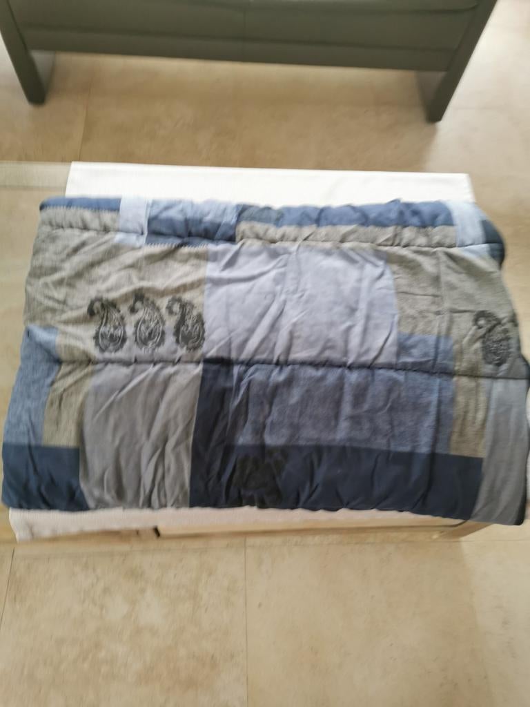 Blauwe slaapzak voor volwassene met volledige rits links voor zomer en winter. Afmeting 190 x 77 cm.