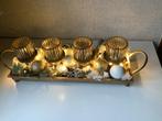 Een schaal met lichtjes en potjes om kaarsen in te zetten . De schaal is 50 cm lang en 17 cm breedte. Alles is in zeer goede staat