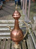 Een toffe rood koperen kan met handvat en voeten in geel koper. Hoogte 40-50 cm. Af te halen te herselt of te versturen tegen de gebruikelijke tarieven.