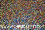 Kleurrijk modern schilderij met de gekende stijl van pollock. De drippings zijn in talrijke kleuren uitgewerkt op een stevig panee