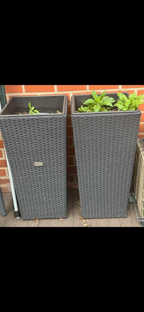Zwarte plantenbak b:36cm l:36cm h:75cm binnenpot b:32cm l32cm h:32cm €25per stuk of€40 voor 2stuks