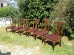 Zes massieve mahoniehouten chippendale-stoelen. Zitting vernieuwd en in zeer goede staat. Levering mogelijk in de sector de panne/