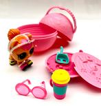 Lol surprise poppetje in roze spinnining ball, met opbergplekken met toebehoren! Met gebruiksporen. Bekijk steeds al de foto's