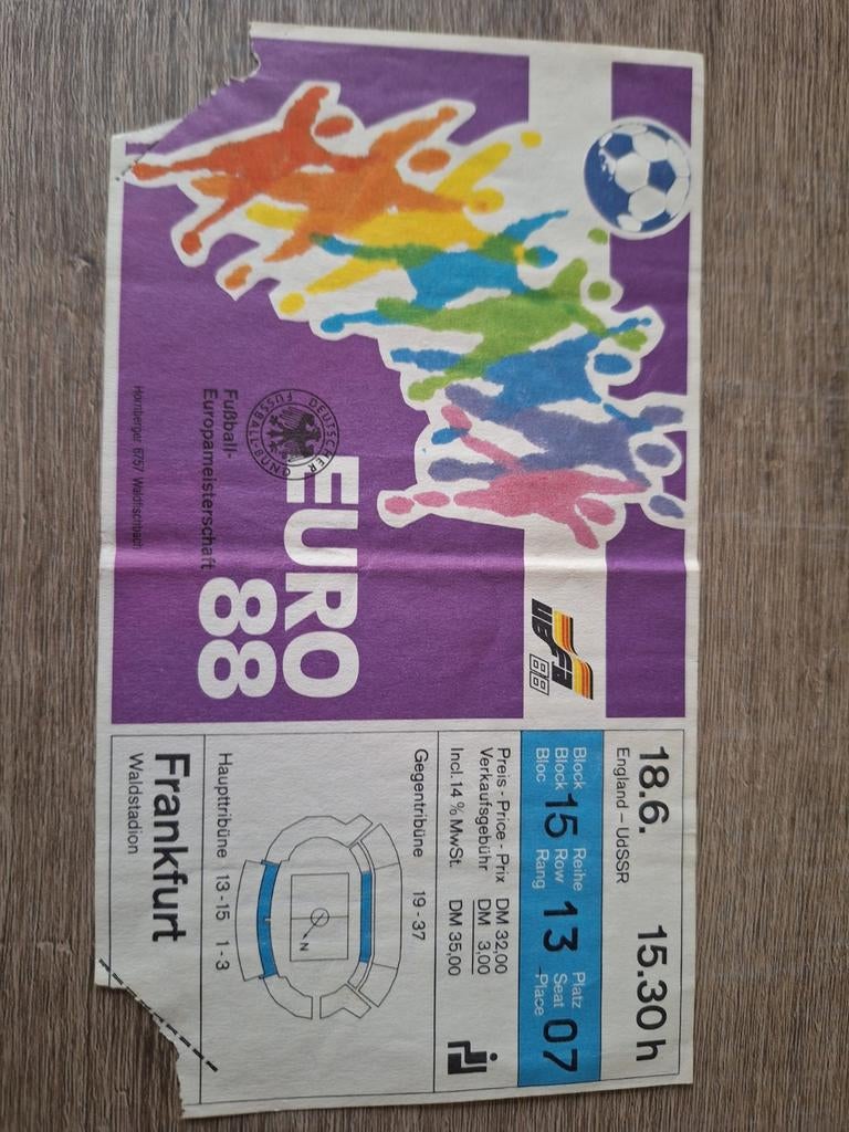 Inkomticket groepsfase EK 1988 Engeland-Nederland