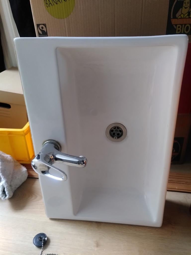 En parfait état lavabo/lave-mains en céramique blanche + mitigeur