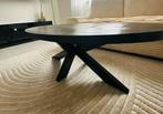 Mooie ovaal salontafel van massief mangohout in het zwart. Slechts 1 jaar gebruikt. De tafel is nog in goede staat, maar op sommig