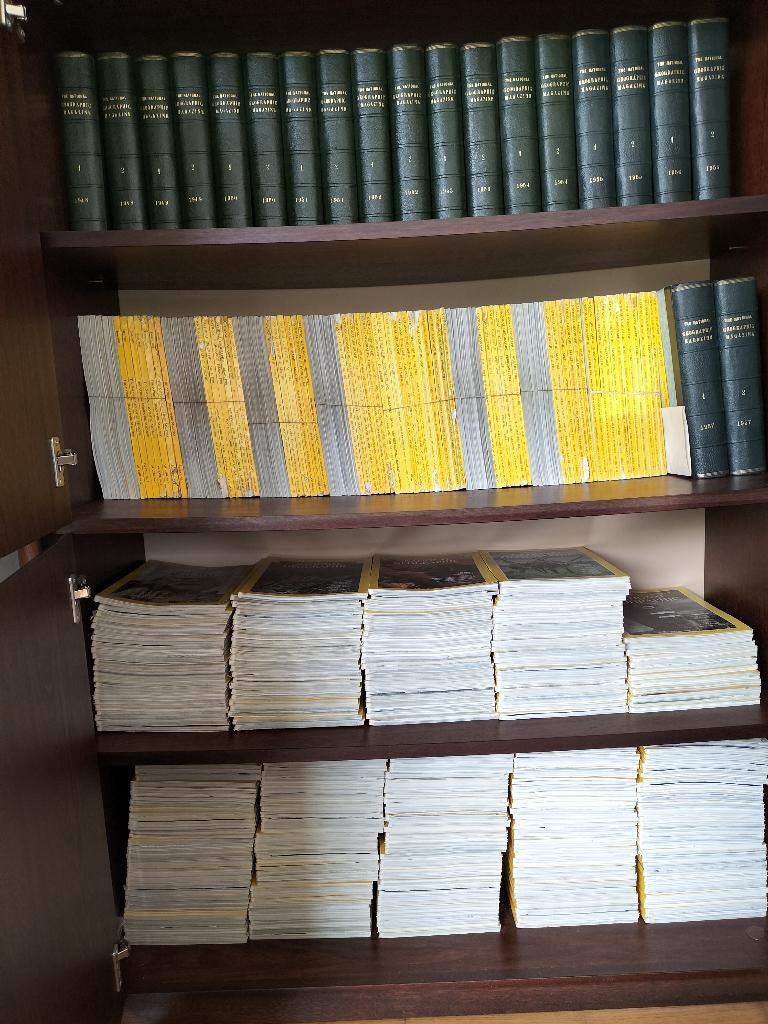 Uitzonderlijke collectie national geographic magazines van 1948 tot heden (abonnement loopt nog tot nov 2026) (ontbreken : 1959 (behalve jan.), 1967 (Behalve jan.), 1968, 1969, 1970, 1971, Sept 1972, Zo goed als nieuw Ophalen