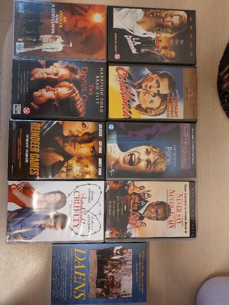 Lot van 9 vhs films psycho casablanca reindeer games never say never again the devil´s own intolerable cruelty la confidential an officer and a gentleman daems