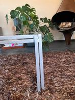Design salontafel aangekocht bij beurms interieur de panne. Lengte 84 cm- breedte 82 cm- hoogte 41 cm, gemeten inclusief de pootjes aan de zijkant van het glasblad. Afmeting glasblad 76 x 76 cm. Onder