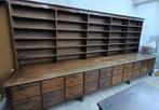 Oude winkelkast met schuiven en etagere toonbank toog ladekast info stuur pb 4m20 lang bieden