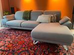 Grijze zetel met verstelbare hoofdsteunen, zijsteunen, longchair en 1 licht uitschuifbaar stuk. Gebruikte maar goede staat. Geen huisdieren of rokers. B: 2,75m d: 1,65m