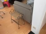 Onderstel in zwart smeedijzer blad in fineerhout 39x22 cm hoogte tot aan blad 40 cm, totale hoogte 53 cm breedte onderaan 30cm, bo