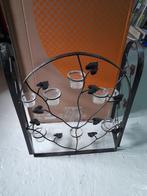 Zwart ijzeren theelichtkaarsenhouder met bladerenfiguur geschikt voor 10 kaarslichtkaarsjes afmeting hoogte 50 cm. Lengte 76 cm ve
