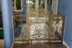 Zeldzame zware smeedijzeren poort in drie delen, rijkelijk versierd met florale en geometrische motieven. Ideaal als decoratieve b