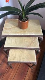 3-delig setje van marmeren bijzettafeltjes met metalen pootjes, in zeer goed staat!