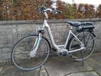 Pegasus siena-fiets, grijs aluminium frame, stevig en stabiel, totaalgewicht 24,5 kg, maat 50, verstelbare stuurpenpositie en vork met instelbare schokdemper, motor in het crankstel, 4 ondersteuningsn
