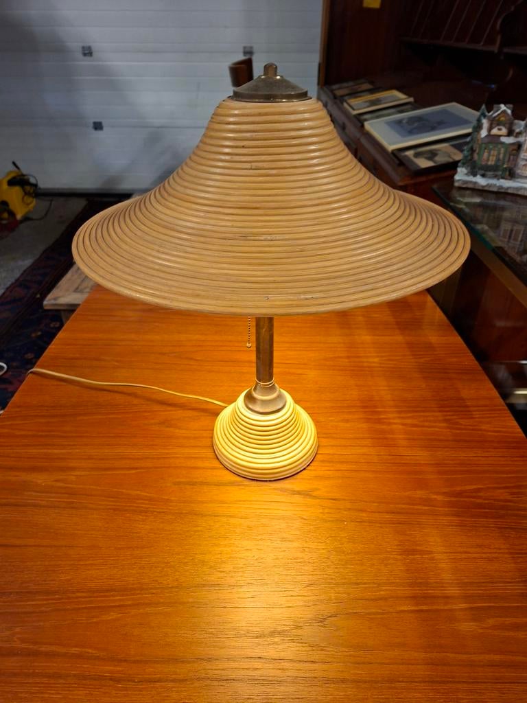Vintage pencil reed rotan tafellamp itallian mid century design jaren 70 bieden