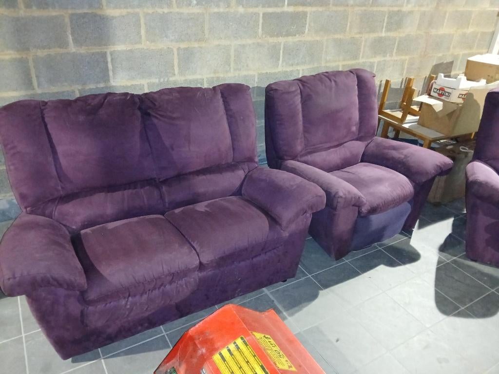 Canapé deux places + 2 fauteuils 1 place dont un avec position relax bon état, traité scothguard à enlever à lens (belgique)