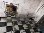 Set van 3 tafels en 1 spiegel metalen frame met glazen blad verschillende afmetingen kleinste tafel: ongeveer 45x45 cm x 65 cm h h