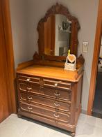 Een antieke franse walnoot kaptafel met een rococo-vormige spiegel en decoratieve ladefronten. .In mooie staat .prijs is bespreekb