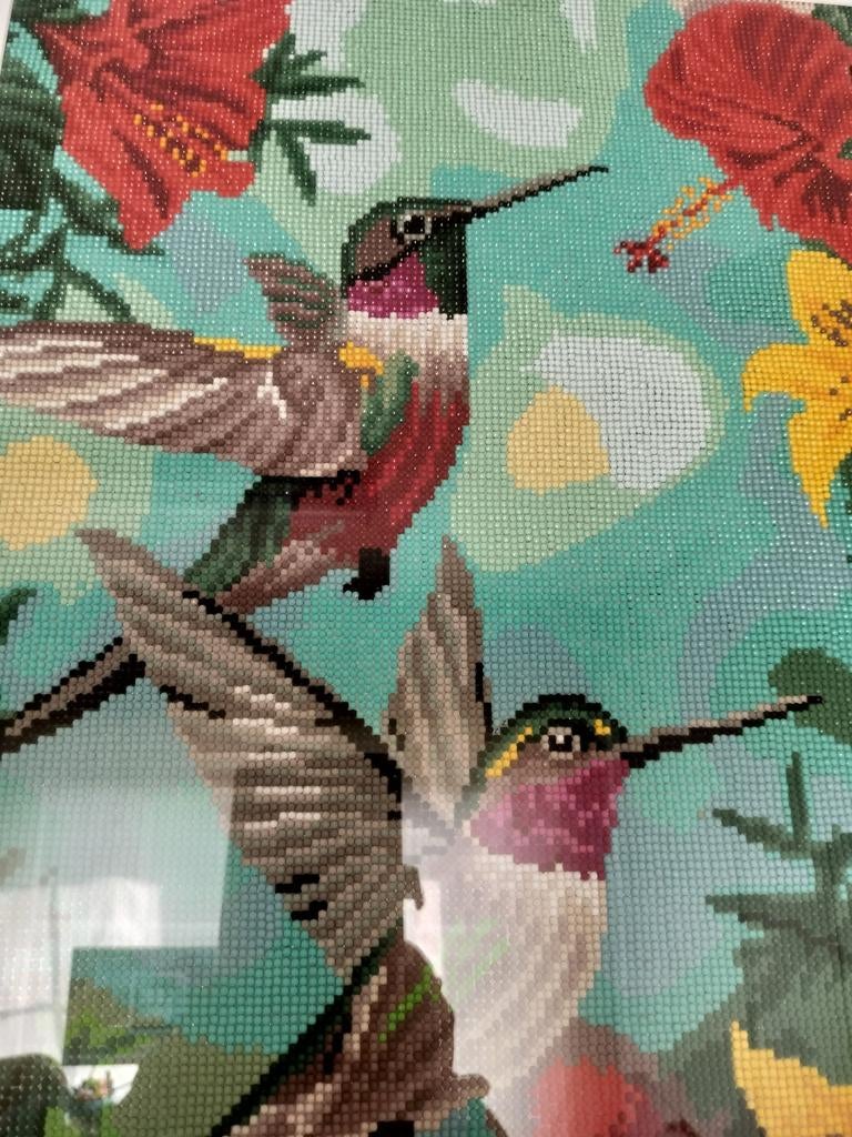 Afgewerkte Diamond painting kolibrie - 73x53cm