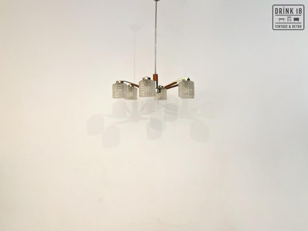 Een zeldzame en authentieke mid-century kroonluchter, rechtstreeks uit de designperiode van de jaren '60. Dit stuk is een mooi voorbeeld van het verfijnde vakmanschap dat kenmerkend is voor scandi