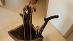 Oude wandelstokken met houder in eik .