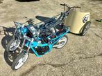 Het is een ben-hur-tank die opnieuw is bekeken in een moderne versie, getrokken door twee dubbele motorfietsen! Ontworpen als pron
