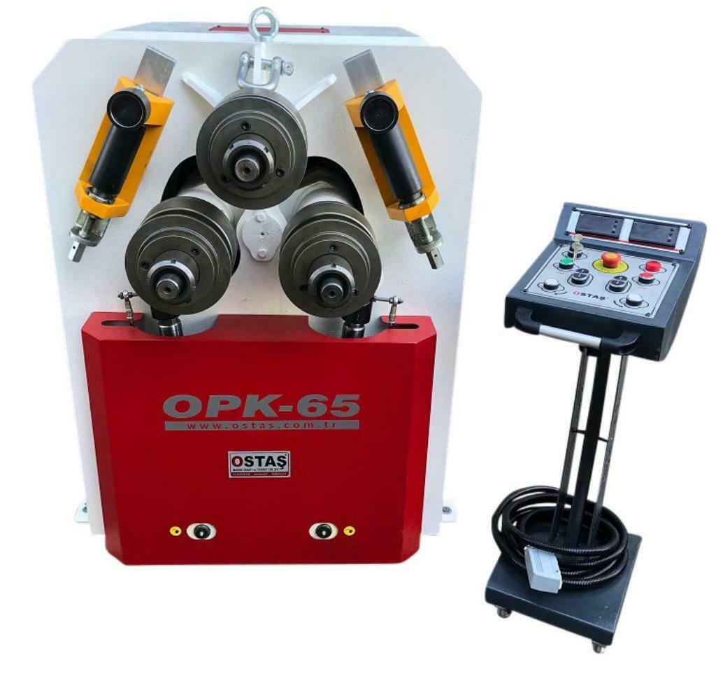 Ostas profielwals type opk-65 - asdiameter 60 mm - onderste twee walsen worden hydraulisch verplaatst - drie rollen aangedreven - 2 digitale uitlezingen - remmotor - horizontaal/verticaal te gebruiken