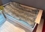 Life time 1-persoonsbed met lade voor logeerbed. Incl. Zijwand om niet uit bed te vallen. (Niet op foto) inclusief 2 matrassen in gebruikte staat. Hoes is rondom de matras en afneembaar om te wassen.