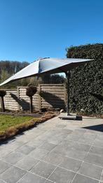 Prachtige parasol met sokkel , zoals op foto te zien ontbreekt er 1lat maar hindert werking van de parasol niet