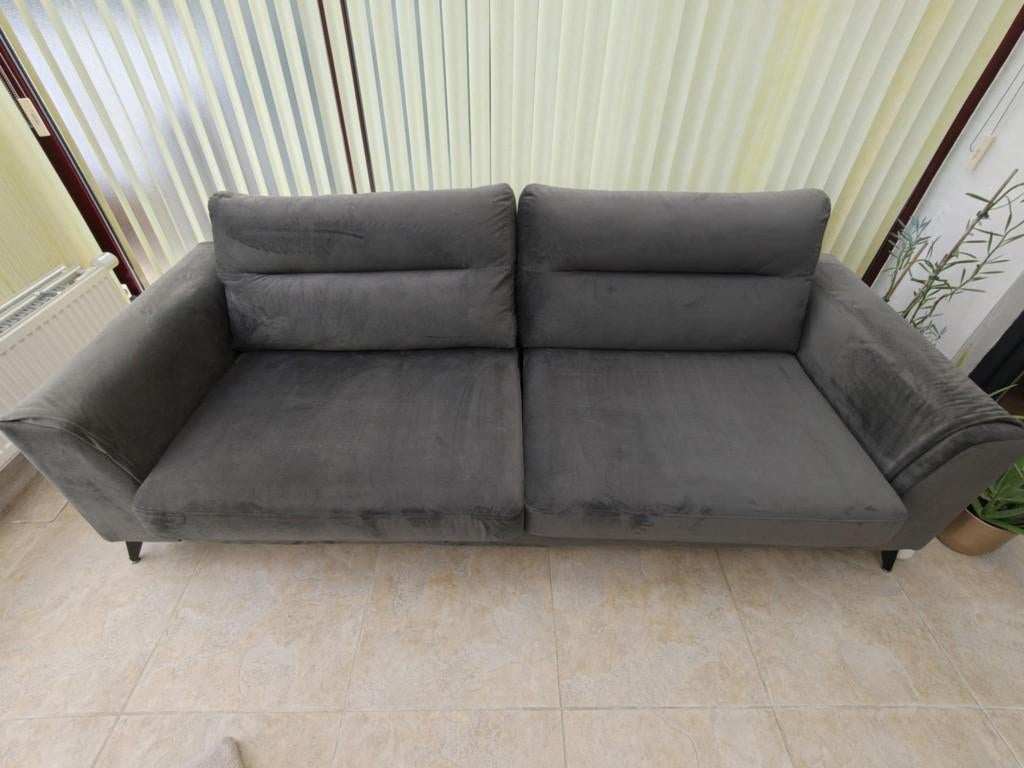 Zeer mooie 3-zitsbank van materiaal in velvet-stijl. Zeer comfortabel zo goed als nieuw!! Doe een bod 2,20m x 0,90cm