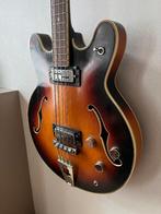 Vintage hollowbody basgitaar uit de jaren 60, medium scale (31,5”) met één knop voor volume en een toneknop per pickup. De neck pi